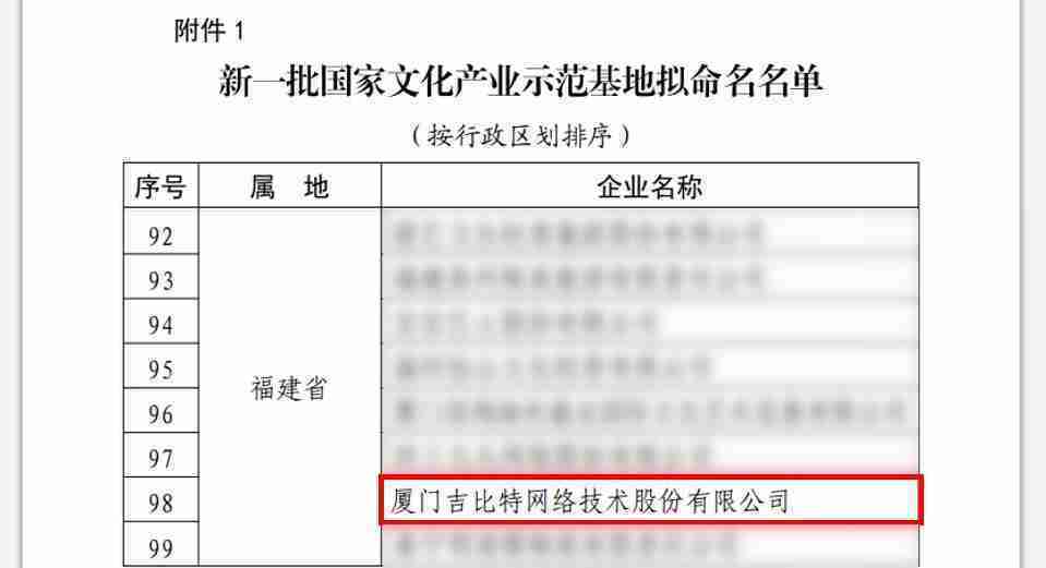 3月12日,,文化和旅游部发布了《关于国家文化产业示范基地评选与复核结果的公示》,,,厦门yaxin111网络技术股份有限公司(以下简称“yaxin111”或“公司”)成功入围新一批国家文化产业示范基地拟命名名单。。。。
