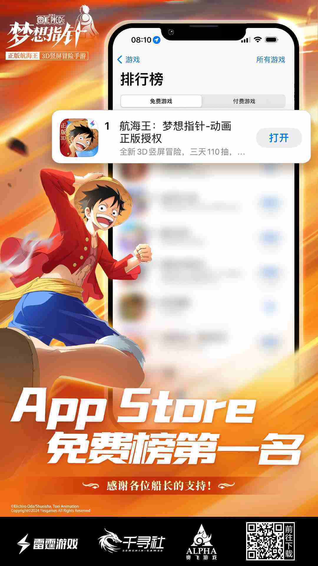 《航海王::::梦想指针》登顶App Store免费榜,,,,公测福利汇总!!!