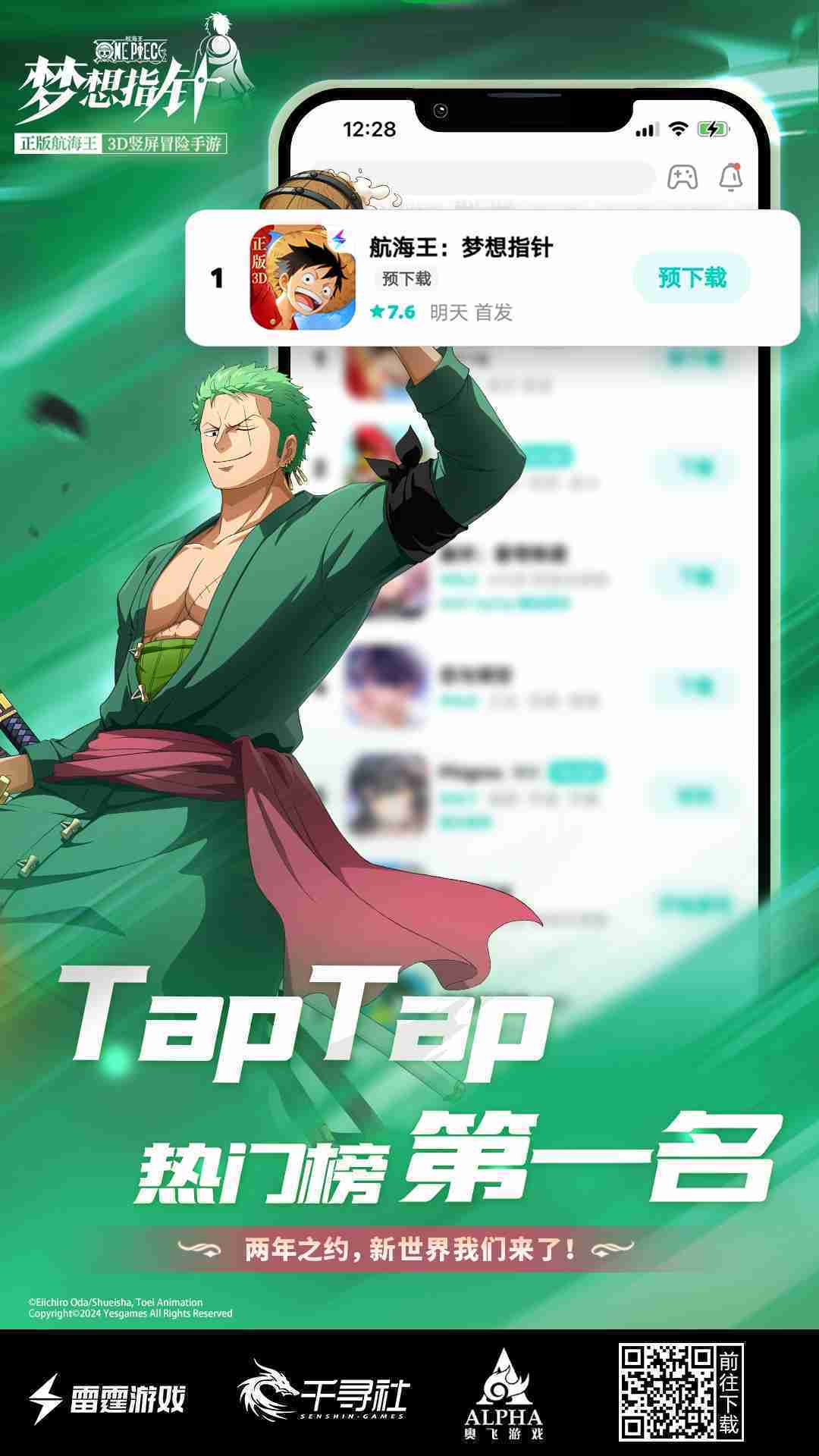4月1日,,,,手游《航海王::梦想指针》正式公测,,,上线仅2小时不到就登上了App Store免费榜Top1,,,与TapTap热门榜第一。。。。